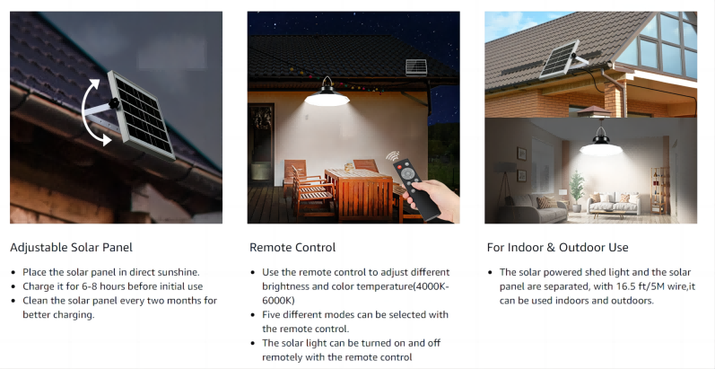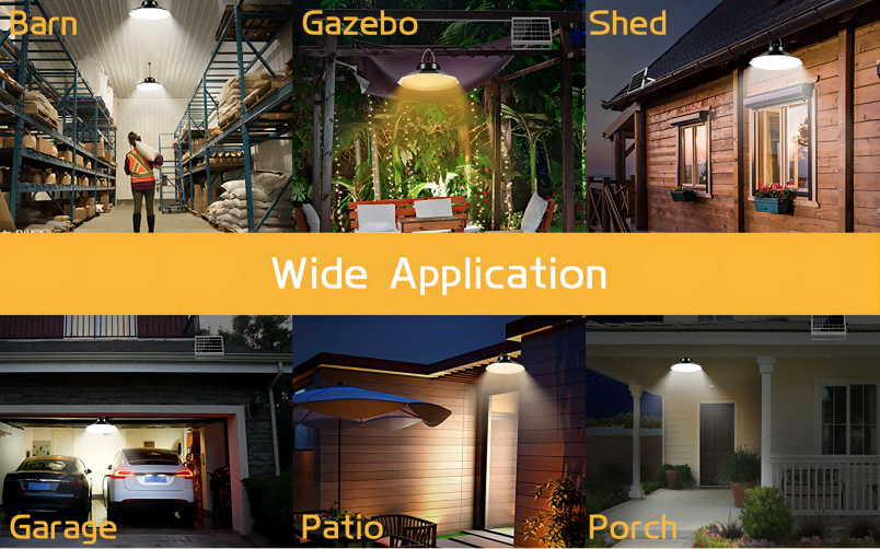 4. Wye Toepassing Hierdie sonkrag-aangedrewe skuurligte het 3 kleurtemperature: 4000K-6000K (Warm, Wit, Gemengde kleur), 3 in 1, wat aan die behoeftes van verskillende omgewings en scenario's kan voldoen,