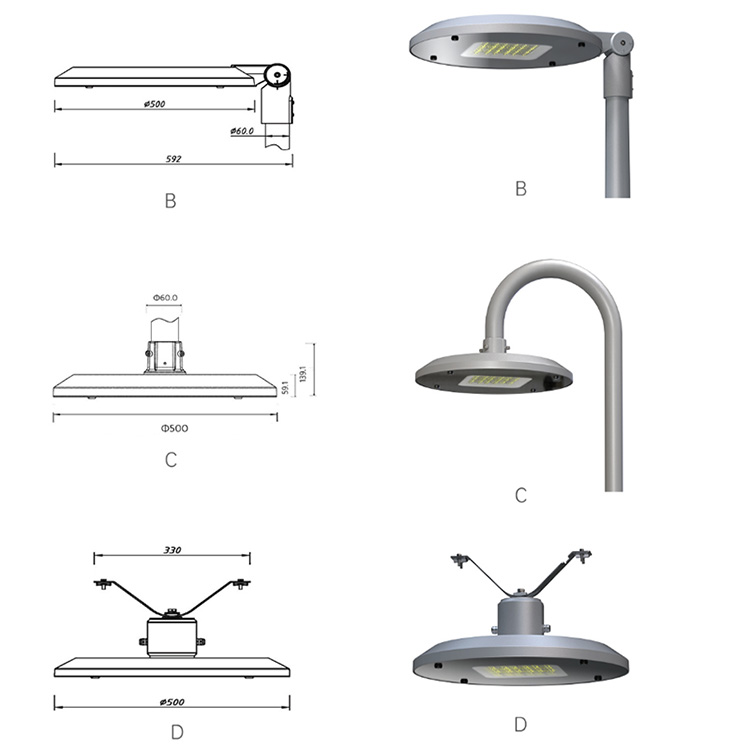 | Behuising Grootte (mm) | Φ500*500*450 | Φ500*500*168 | Φ500*500*139 | Φ500*500*286 | Aluminium liggaam, gepantserde glas, waterdigte rubberring, 304 s/s skroewe, |
