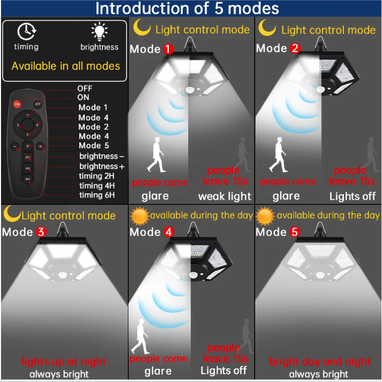 2. 3 Night Modes & Timers This solar indoor light with high sensitive motion sensor features