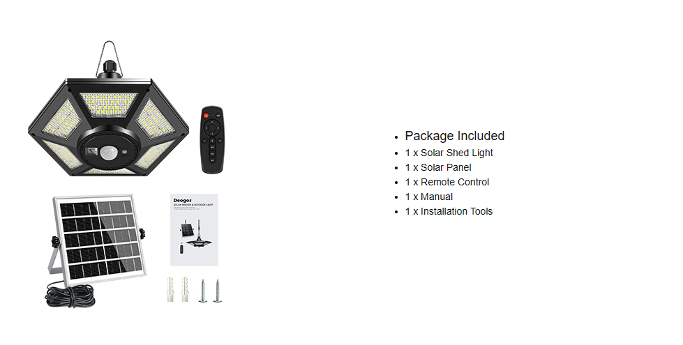 With 180 LEDs producing 1000 lumen, this solar shop light goes well in any dark areas.